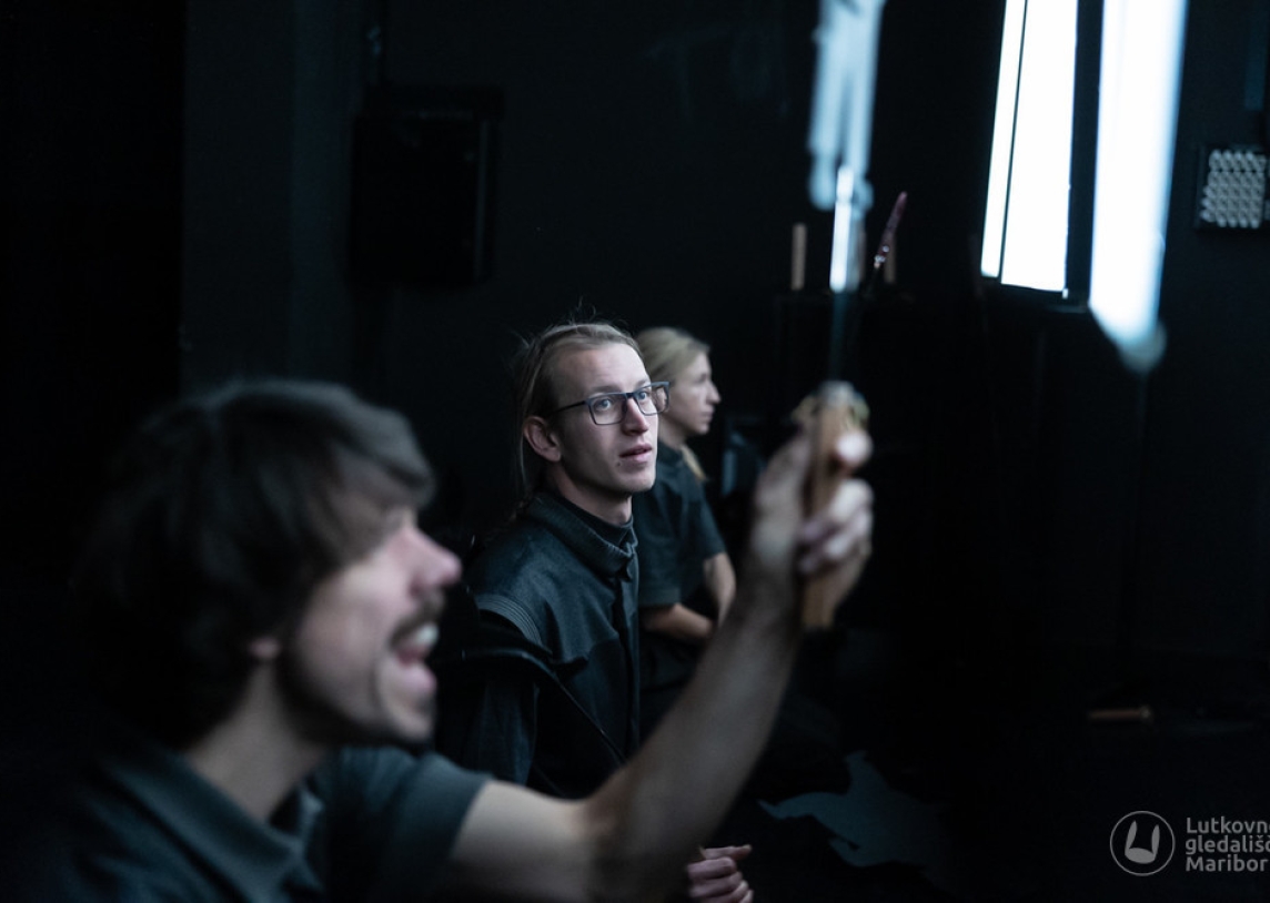 For the youngest viewers, the narrative of overcoming fear is certainly at the forefront of the show, but Grabnar insightfully chooses a staging technique that gently invites their older companions, in addition to the target audience, to contemplate and be curious about how things happened on stage. In this way, he taps into that stage magic that also distinguishes puppetry, where hidden processes create magical effects on the stage. Equally thoughtfully, the director incorporates the sounds that accompany the changing of the individual frames, as well as the human element of the performance itself – all performed by all three actors, so that the feeling of the production does not become too fictional and surreal and sink into the idea of a TV or film cartoon. Herein also lies the main downside of Fearsome – its technological and performative complexity, which demands precision and perfection from the actors, while at the same time relying on the flawless functioning of the technology. The risk that the director takes in doing so is that however beautiful and superlative the production, a mistake could destroy the precisely constructed pace and narrative arc of the performance and thus ruin the whole experience. But by opting for non-automatic animation, the production retains what is unique to theatre compared to video art, while at the same time creating a more complex level that enriches the event for adults who encounter puppet theatre through children. More importantly, Grabnar does not underestimate his target audience in any way, but offers them a multilayered and reflective theatrical experience, which in its conceptual complexity, is fully comparable to contemporary scenic practices created for adults, thus proving once again that puppet theatre has equivalent performative potential.