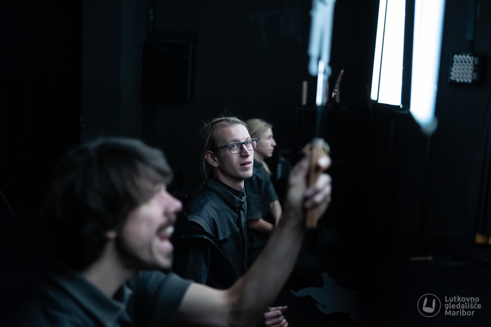 For the youngest viewers, the narrative of overcoming fear is certainly at the forefront of the show, but Grabnar insightfully chooses a staging technique that gently invites their older companions, in addition to the target audience, to contemplate and be curious about how things happened on stage. In this way, he taps into that stage magic that also distinguishes puppetry, where hidden processes create magical effects on the stage. Equally thoughtfully, the director incorporates the sounds that accompany the changing of the individual frames, as well as the human element of the performance itself – all performed by all three actors, so that the feeling of the production does not become too fictional and surreal and sink into the idea of a TV or film cartoon. Herein also lies the main downside of Fearsome – its technological and performative complexity, which demands precision and perfection from the actors, while at the same time relying on the flawless functioning of the technology. The risk that the director takes in doing so is that however beautiful and superlative the production, a mistake could destroy the precisely constructed pace and narrative arc of the performance and thus ruin the whole experience. But by opting for non-automatic animation, the production retains what is unique to theatre compared to video art, while at the same time creating a more complex level that enriches the event for adults who encounter puppet theatre through children. More importantly, Grabnar does not underestimate his target audience in any way, but offers them a multilayered and reflective theatrical experience, which in its conceptual complexity, is fully comparable to contemporary scenic practices created for adults, thus proving once again that puppet theatre has equivalent performative potential.