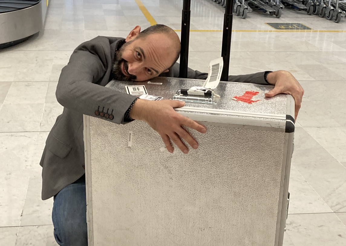 Včeraj pa nas je s pariškega letališča dosegla novica, da sta ustvarjalca na poti nazaj v Španijo v Parizu kovček vendarle našla. Njuno leto in pol trajajoče delo ni izgubljeno nekje med množico izgubljene prtljage, njuna turneja s Turistično melanholijo pa se lahko uspešno nadaljujejo po Evropi in po svetu.